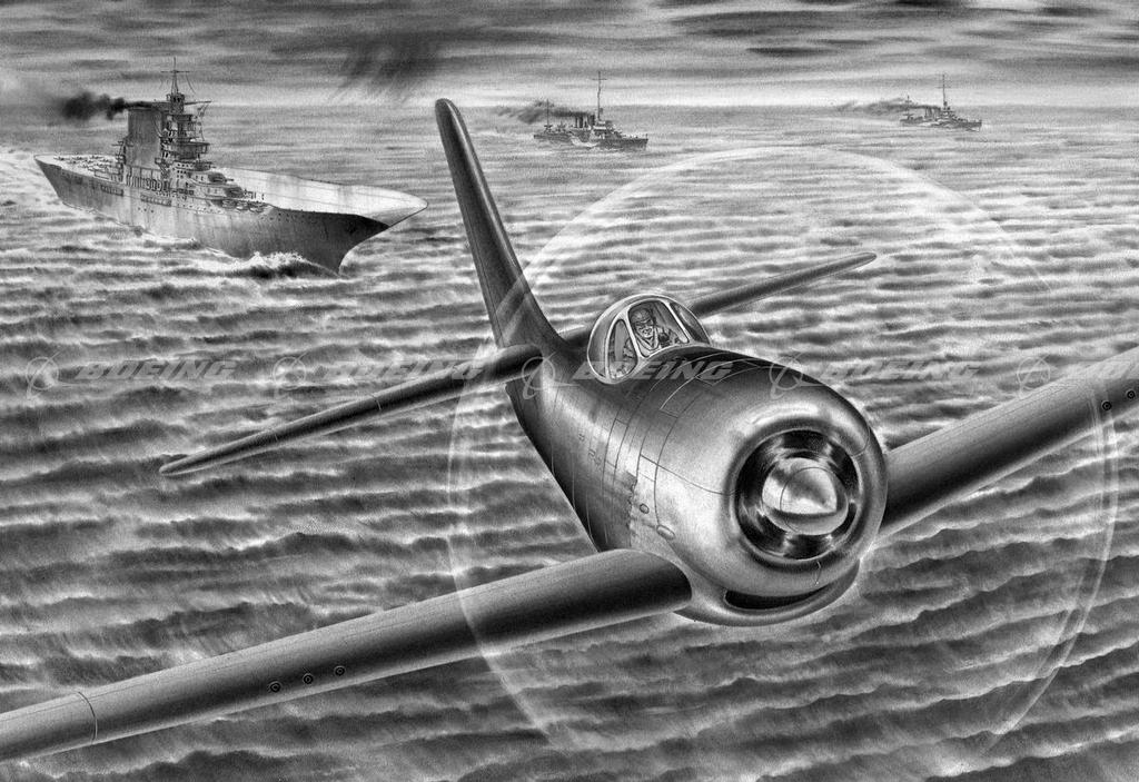 Artist's Conception of XF8B-1 Taking Off from Carrier