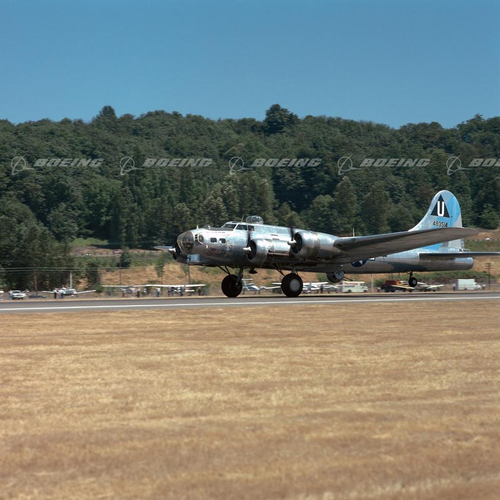 As the storm of World War II shook the world, Boeing-designed B-17 bombers darkened European skies, dropping 640,036 bombs on designated targets. Described by General H. H. Hap Arnold, as the backbone of our worldwide aerial offensive, the B-17 Flying Fortress served in every World War II combat zone. Boeing, Douglas, and Lockheed Vega produced 12,731 B-17s at plants across the country, and the four-engine bombers became legendary for their ability to stay in the air after taking brutal poundings.
