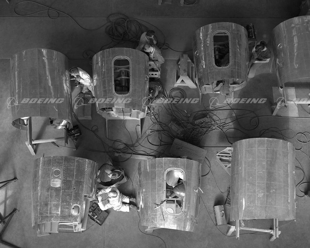Mechanics Assemble a B-17 Flying Fortress Nose Section