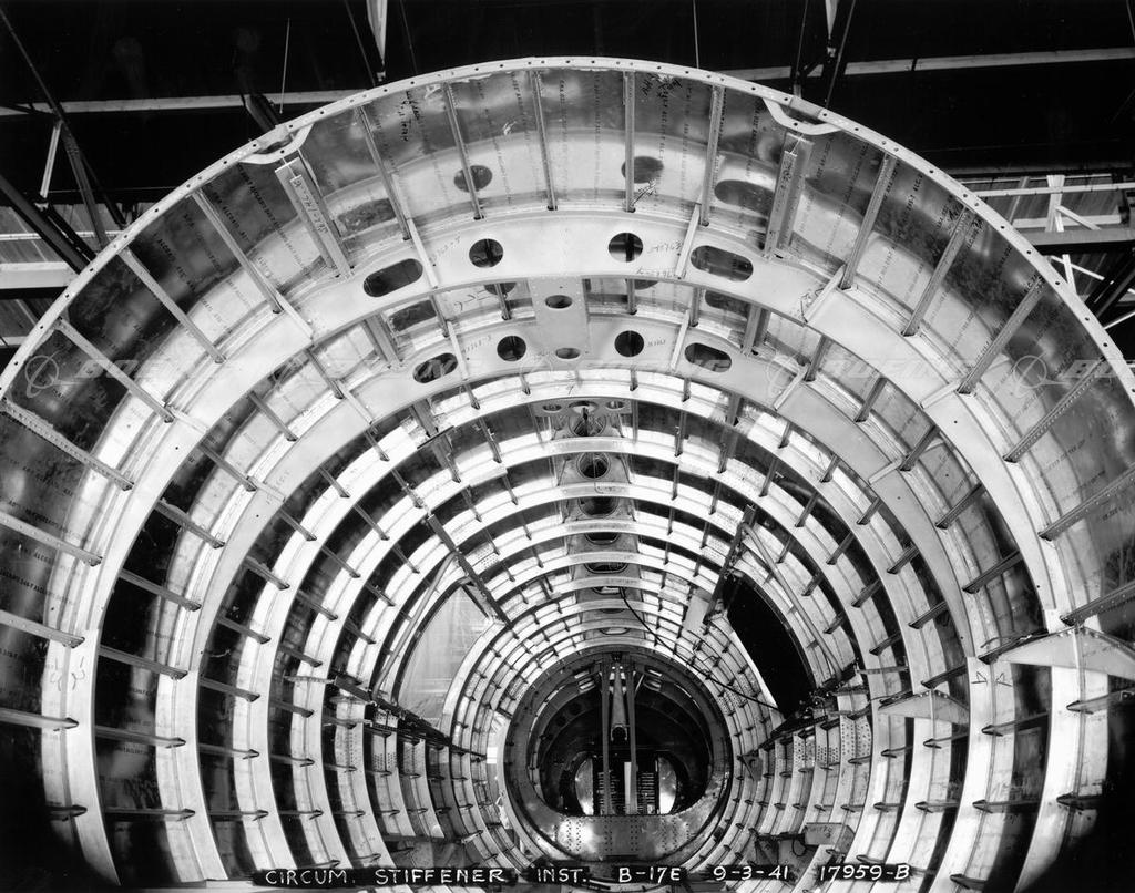 B-17E Flying Fortress Fuselage is Removed from Jig