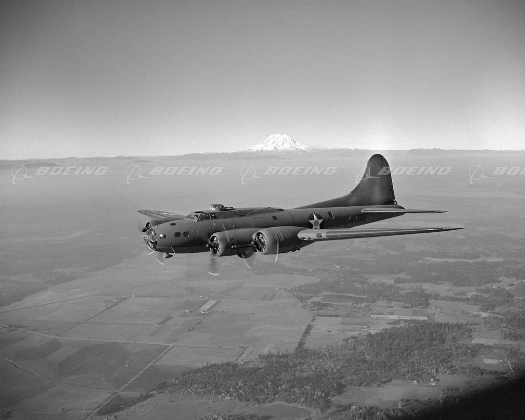 B-17E Flying Fortress Flies Past Mt. Rainier, Air to Air