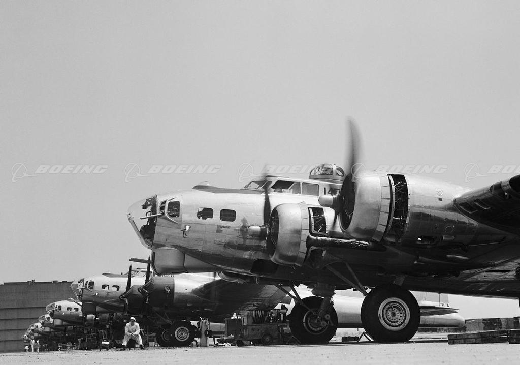 As the storm of World War II shook the world, Boeing-designed B-17 bombers darkened European skies, dropping 640,036 bombs on designated targets. Described by General H. H. Hap Arnold, as the backbone of our worldwide aerial offensive, the B-17 Flying Fortress served in every World War II combat zone. Boeing, Douglas, and Lockheed Vega produced 12,731 B-17s at plants across the country, and the four-engine bombers became legendary for their ability to stay in the air after taking brutal poundings.