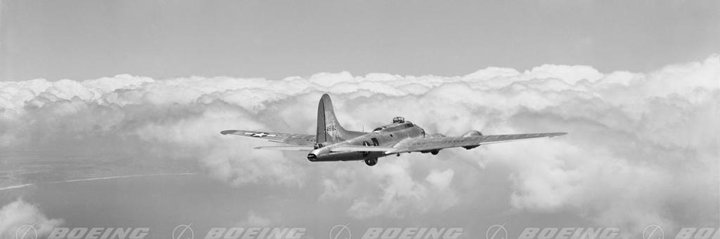 As the storm of World War II shook the world, Boeing-designed B-17 bombers darkened European skies, dropping 640,036 bombs on designated targets. Described by General H. H. Hap Arnold, as the backbone of our worldwide aerial offensive, the B-17 Flying Fortress served in every World War II combat zone. Boeing, Douglas, and Lockheed Vega produced 12,731 B-17s at plants across the country, and the four-engine bombers became legendary for their ability to stay in the air after taking brutal poundings.
