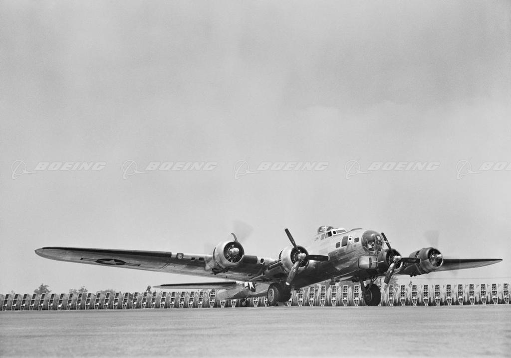 As the storm of World War II shook the world, Boeing-designed B-17 bombers darkened European skies, dropping 640,036 bombs on designated targets. Described by General H. H. Hap Arnold, as the backbone of our worldwide aerial offensive, the B-17 Flying Fortress served in every World War II combat zone. Boeing, Douglas, and Lockheed Vega produced 12,731 B-17s at plants across the country, and the four-engine bombers became legendary for their ability to stay in the air after taking brutal poundings.