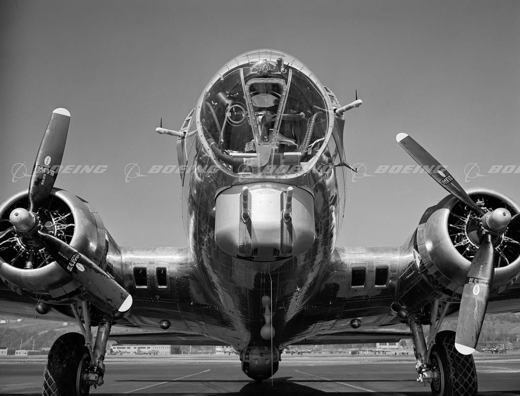 As the storm of World War II shook the world, Boeing-designed B-17 bomber fleets darkened European skies, dropping 640,036 bombs on designated targets. Described by General H. H. “Hap” Arnold as the “backbone of our worldwide aerial offensive,” the B-17 Flying Fortress served in every World War II combat zone. Boeing, Douglas, and Lockheed Vega produced 12,731 B-17s at plants across the country, and the four-engine bombers became legendary for their ability to stay in the air after taking brutal poundings.
