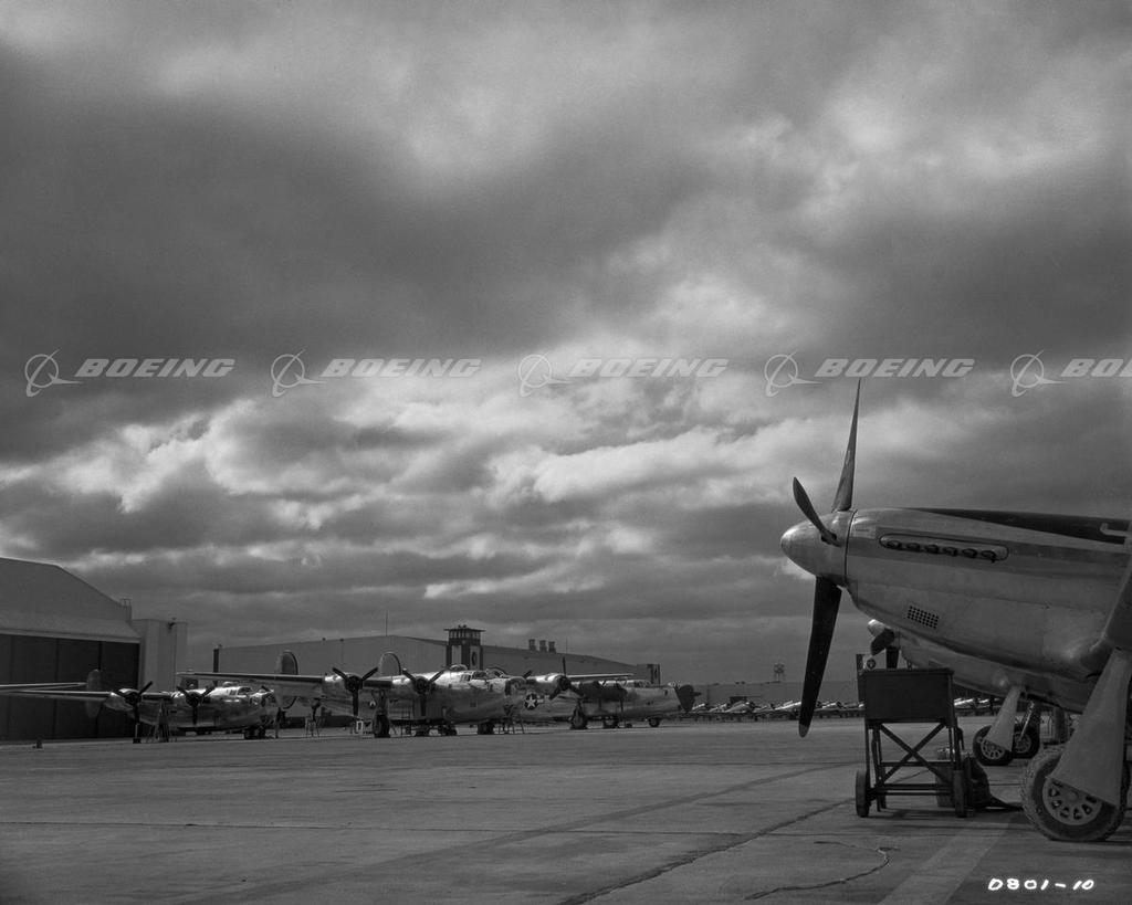 P-51 Mustang Is and B-25C Mitchells at Inglewood Modification Lines