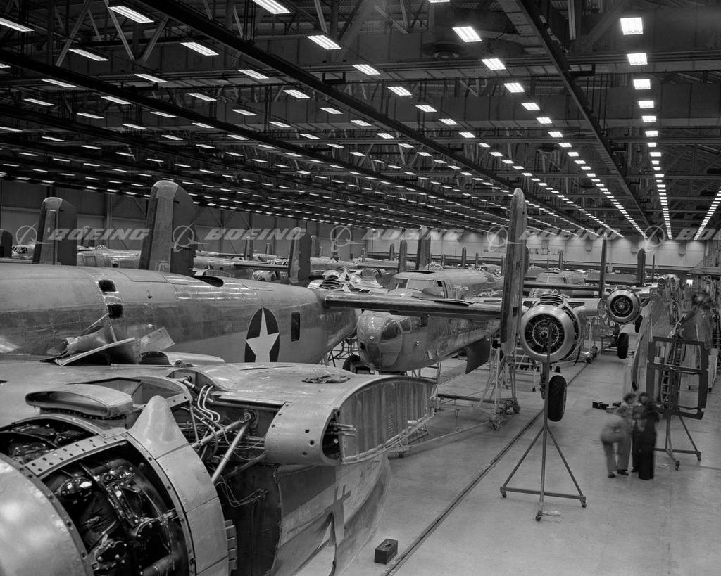 After Lunch, Workers Return to the B-25 Mitchell Assembly Line