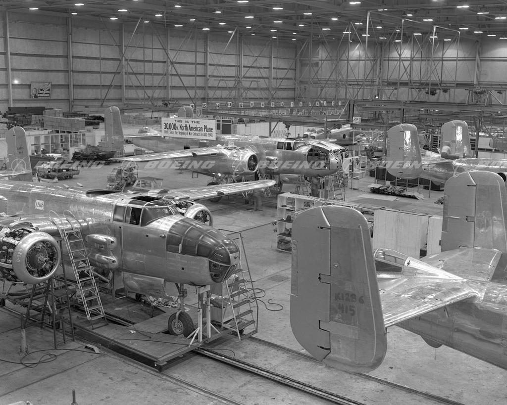 Named after General “Billy” Mitchell, America’s foremost supporter of air power, the B-25 Mitchell first flew on Aug. 19, 1940, and was the first multiengine design to go beyond the prototype stage. North American Aviation built more than 11,000 B-25s for the U.S. Army Air Forces and the U.S. Navy, which called it the PBJ, plus 50 each for China and Great Britain. The B-25 bomber had a wingspan of 67 feet and was 52 feet 11 inches long. One version, the B-25H, was the most heavily armed attack bomber of its time, with a 75-millimeter gun, up to 14 .50 caliber machine guns and 5,000 pounds of bombs carried in an internal bomb bay.