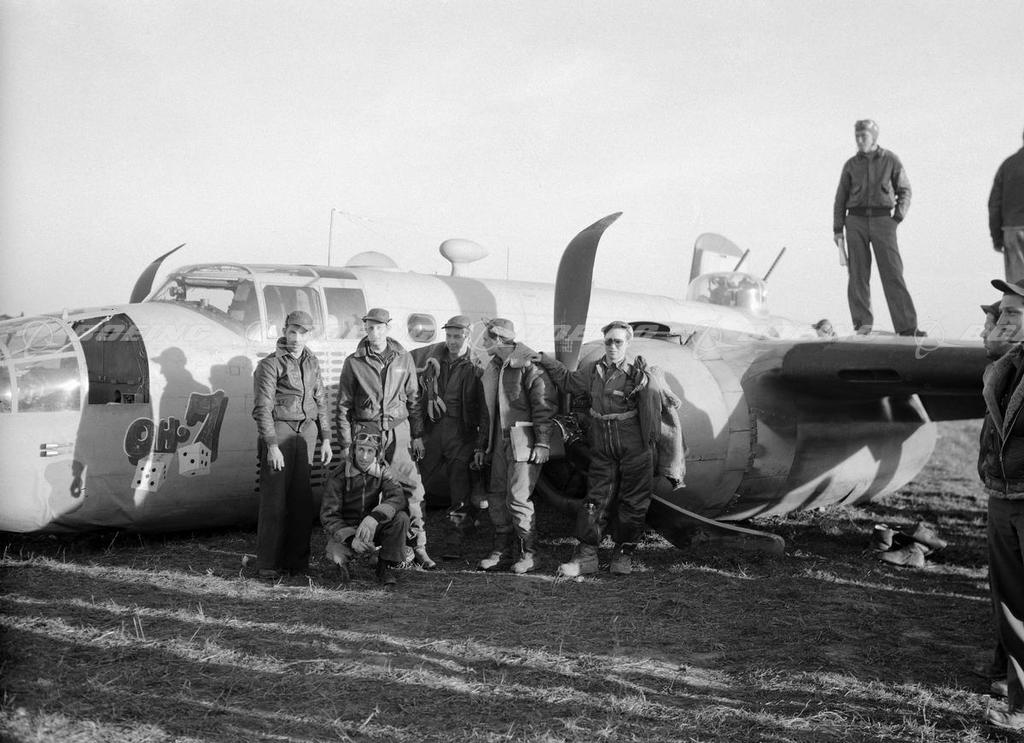 B-25C Mitchell "Oh-7" with Surviving Crew after Emergency Landing