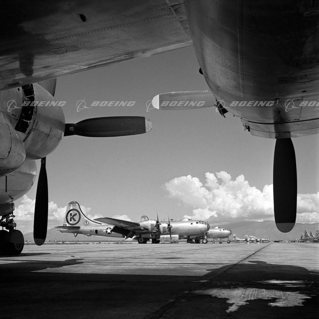 The Boeing B-29, the most technologically advanced airplane produced during World War II, first flew Sept. 21, 1942. At 105,000 pounds, it was the world’s heaviest production airplane. It was the first bomber with crew-cabin pressurization and remotely controlled power turrets. A total of 3,970 B-29s were built.
