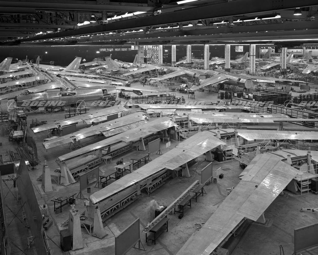 At the time of its first flight, Dec. 17, 1947, the B-47 Stratojet represented a radical departure from traditional design, and it set the design standards for all large jet aircraft until the present time. The six-engine Boeing B-47 was America's first multiengine swept-wing jet bomber. Its thin 116-foot wing was extraordinarily flexible and swept back at a 35-degree angle. Eighteen small rocket units in the fuselage provided jet-assisted takeoff (JATO), and parachutes cut its landing speeds. Later models were powered by 5,200-pound-thrust axial-flow jet engines, and top speeds were 600 mph. A total of 2,032 B-47s in all versions were built.
