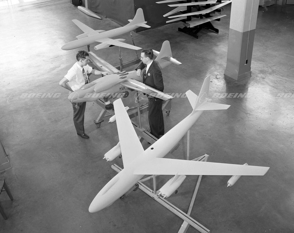 Boeing engineers had envisioned a jet-powered plane as early as 1943. However, wind tunnel tests of straight-wing jet aircraft indicated that the straight wing did not use the full potential of jet-engine power.
