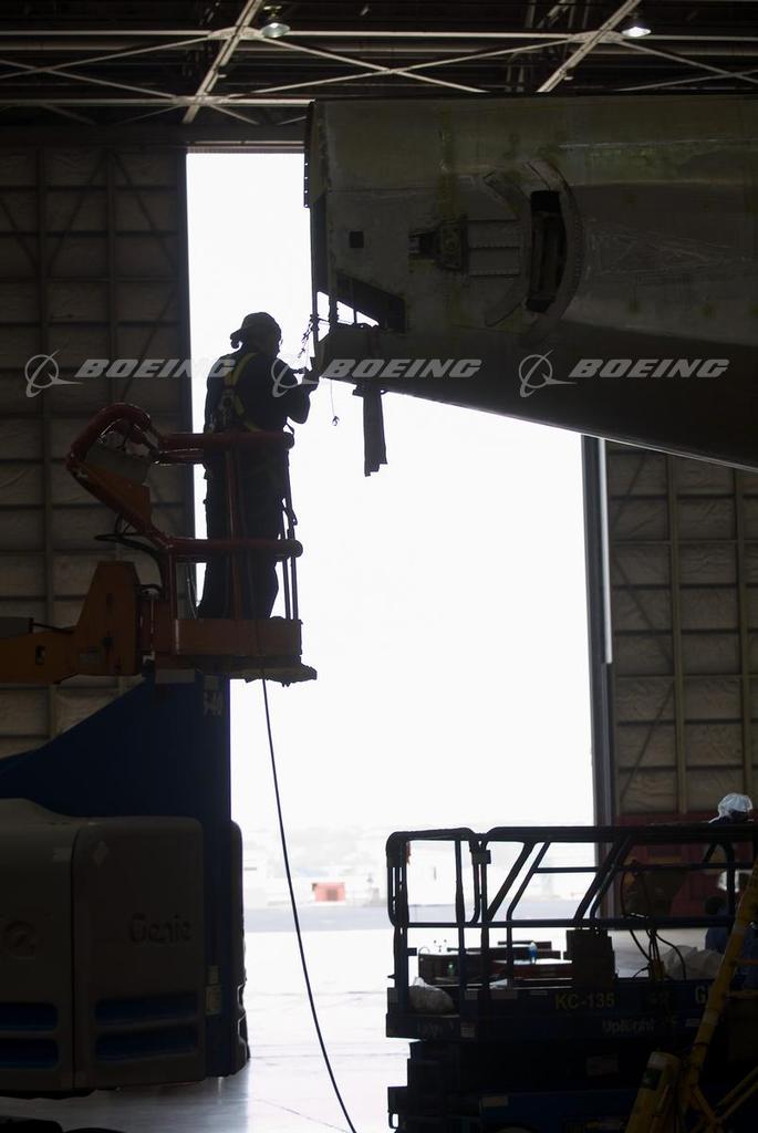 Ground Crew Member Prepares a B-52H Stratofortress for Maintenance