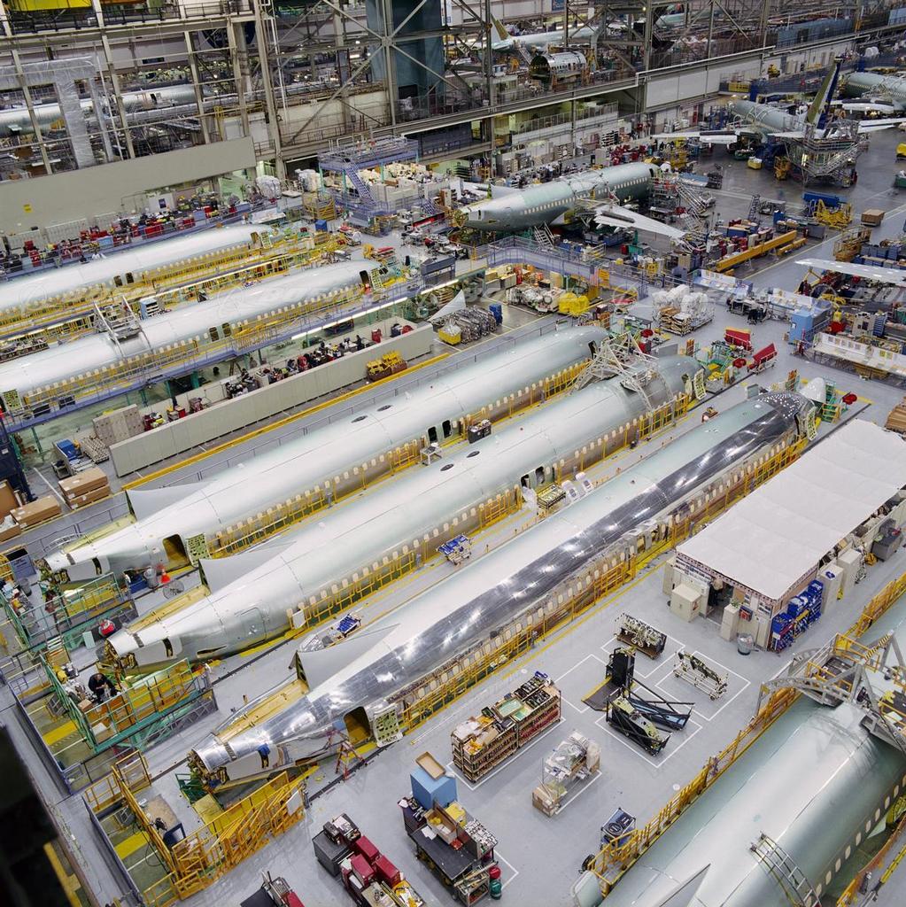 The Boeing Business Jet is built on the 737 platform. The fuselages are assembled in Wichita and transported via rail to Boeing manufacturing facility in Renton, WA. for final assembly. Customers can custom-fit the interiors to accomodate their needs and preferences. In 2002 the 737 manufacturing process converted to a moving line system, replacing the station to station method of assembly pictured here.