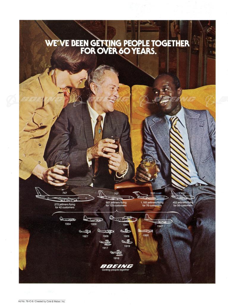 Sample from Boeing Commercial Airplanes "Getting People Together" advertisements from 1976.