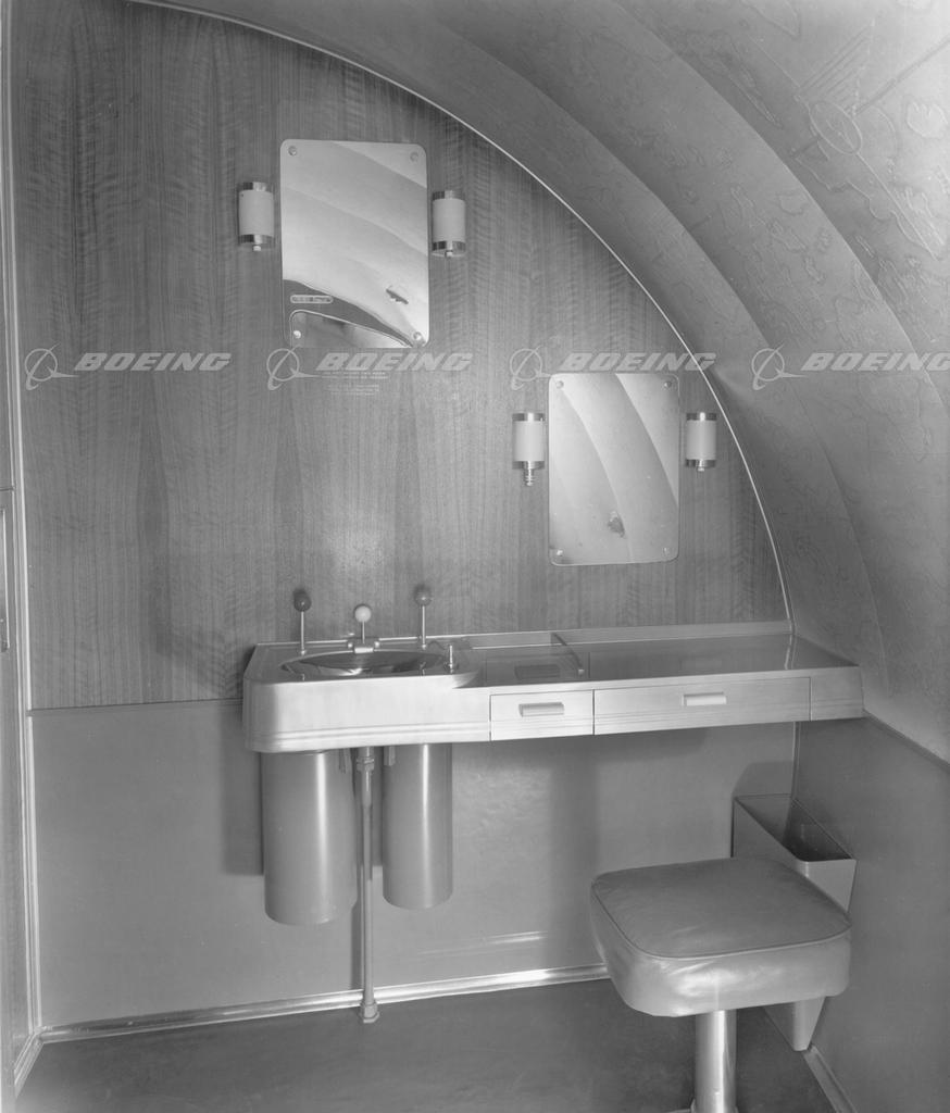 In 1938 Howard Hughes approached Boeing about buying a 307 Stratocruiser for his attempt to break his own around-the-world flight record. Boeing told him that he had to wait until the company had fulfilled orders from TWA and Pan Am. Mr. Hughes did not want to wait, so he bought TWA and diverted their first airplane to his own use – that airplane became the one and only SB-307B, a modified Boeing 307 Stratoliner that included extra fuel tanks for the record flight. The onset of WWII prevented Hughes from making his record attempt. Following the War he had famed industrial designer Raymond Loewy remodel the plane into a luxurious personal transport. The cabin featured a kitchen and bar, sleeping quarters, and a powder room. Hughes rarely used the plane and it was eventually sold. SB-307B was severely damaged in a 1964 hurricane and scrapped. In 1969 the fuselage was recovered and made into a luxury houseboat.