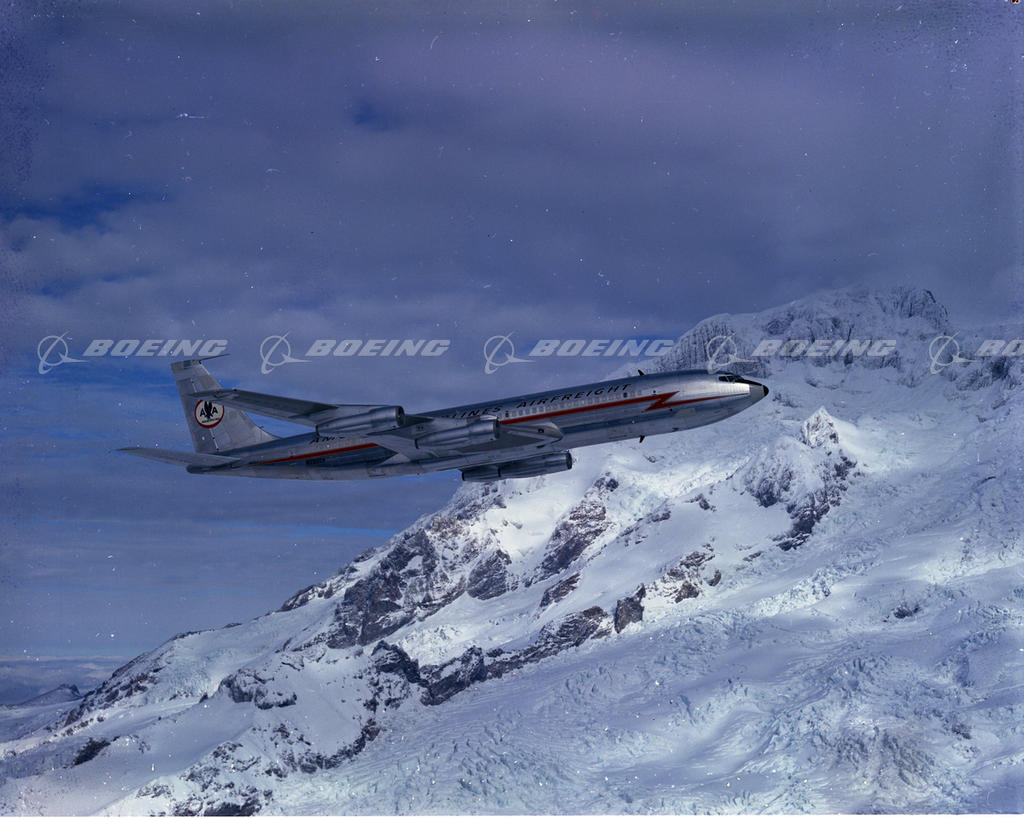 Boeing 707 American Airlines In-flight over Snowy Mountains 1963