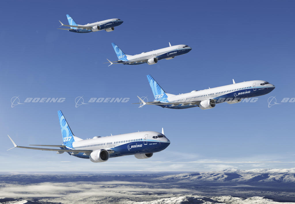 The 737 MAX product family is shown in the 2018 BCA Unified Family livery