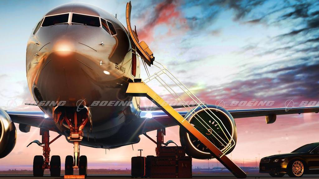 Boeing BBJ Max 8 on Tarmac with Airstairs