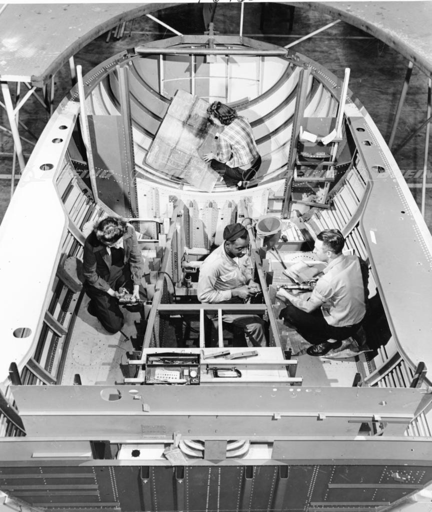 Boeing Workers Inspect Ryan Built Fuselage Section for KC-97G
