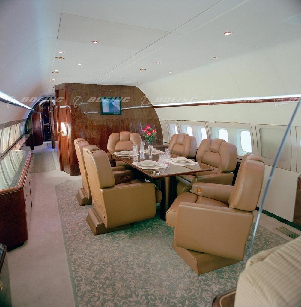 In addition to a dining and conference room area, the Boeing Business Jet can be equiped with a lounge and sleeper seats for up to 24 team members.