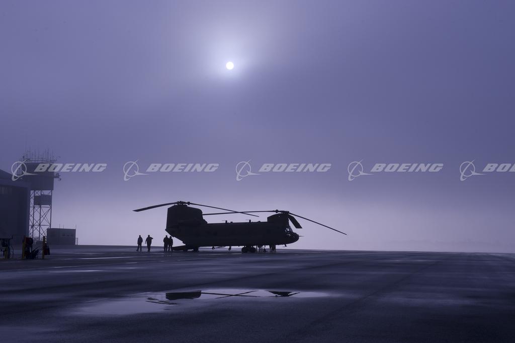 Boeing CH-47F Chinook on Foggy flight Ramp