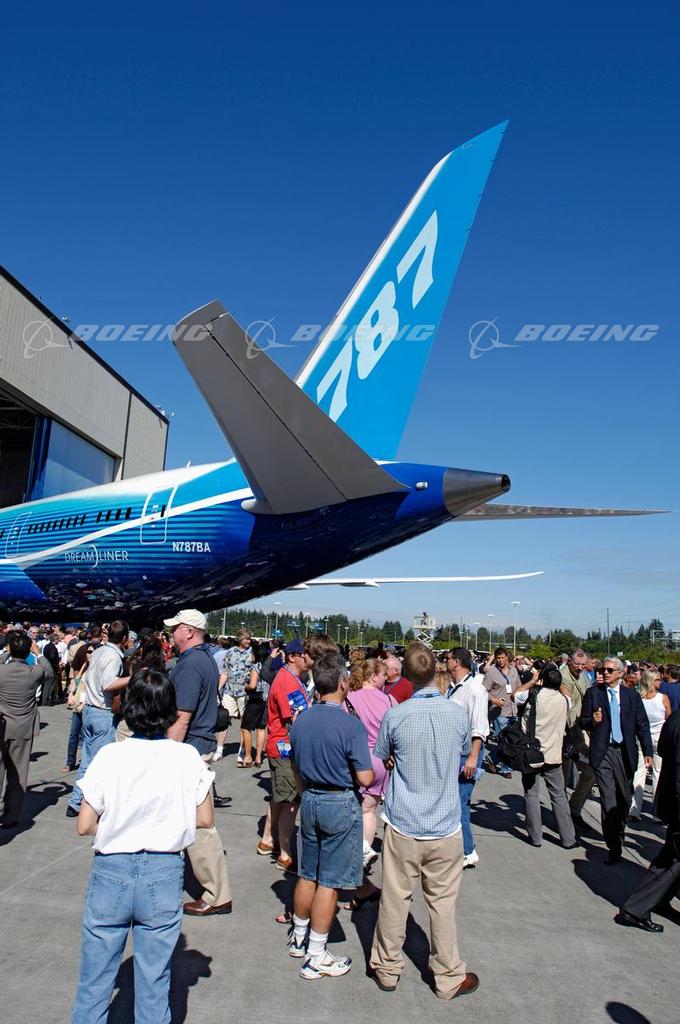 On July 8, 2007 Boeing unveiled the 787 Dreamliner during a one-hour ceremony at its Everett, WA final assembly facility, attended by nearly 15,000 employees, airline custoners, supplier partners and government officials. Broadcast live via satellite worldwide and webcast, the event potentially reached 100 million or more viewers. The Boeing 787 is an all-new, technologically advanced and environmentally progressive airplane, scheduled to enter passenger service in 2008 with Japan's All Nippon Airways.