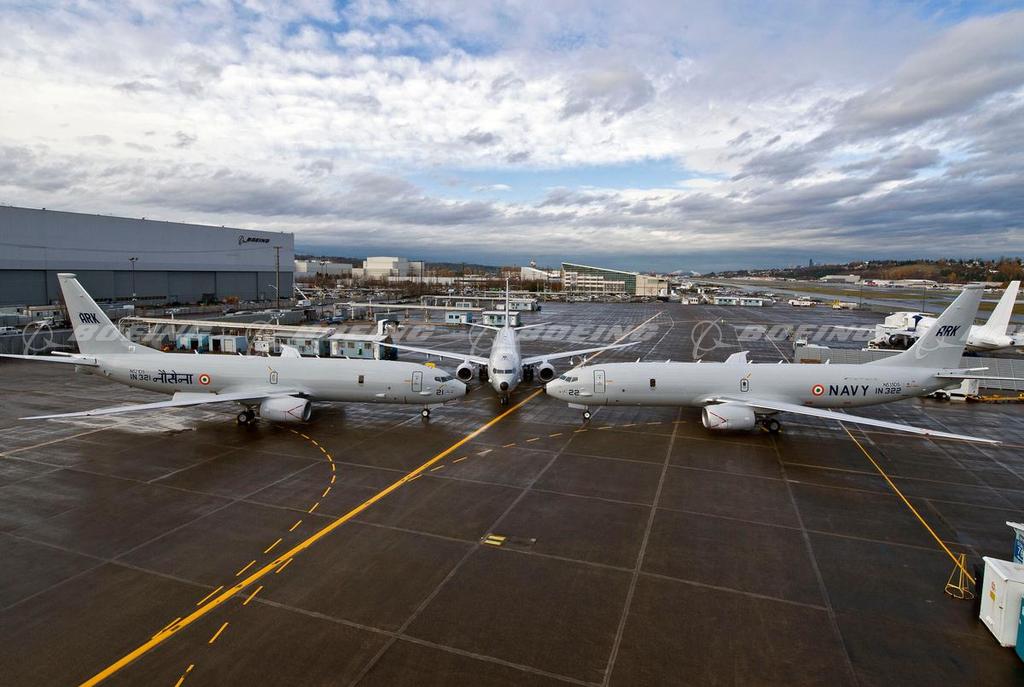 Boeing on Dec. 19, 2012 made an on-site delivery of the first P-8I aircraft to the Indian Navy in Seattle, in accordance with the contract. India will receive this aircraft and two more of its eight contracted P-8Is in 2013. The photo (left to right) depicts the P-8I being used for weapons testing, the P-8I delivered on-site, and the third P-8I aircraft, which recently entered the company’s mission systems installation facility.