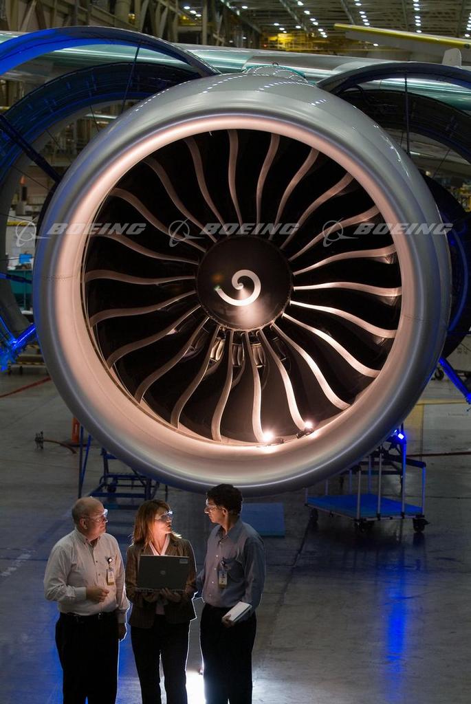 Boeing Engineers with 777 Engine