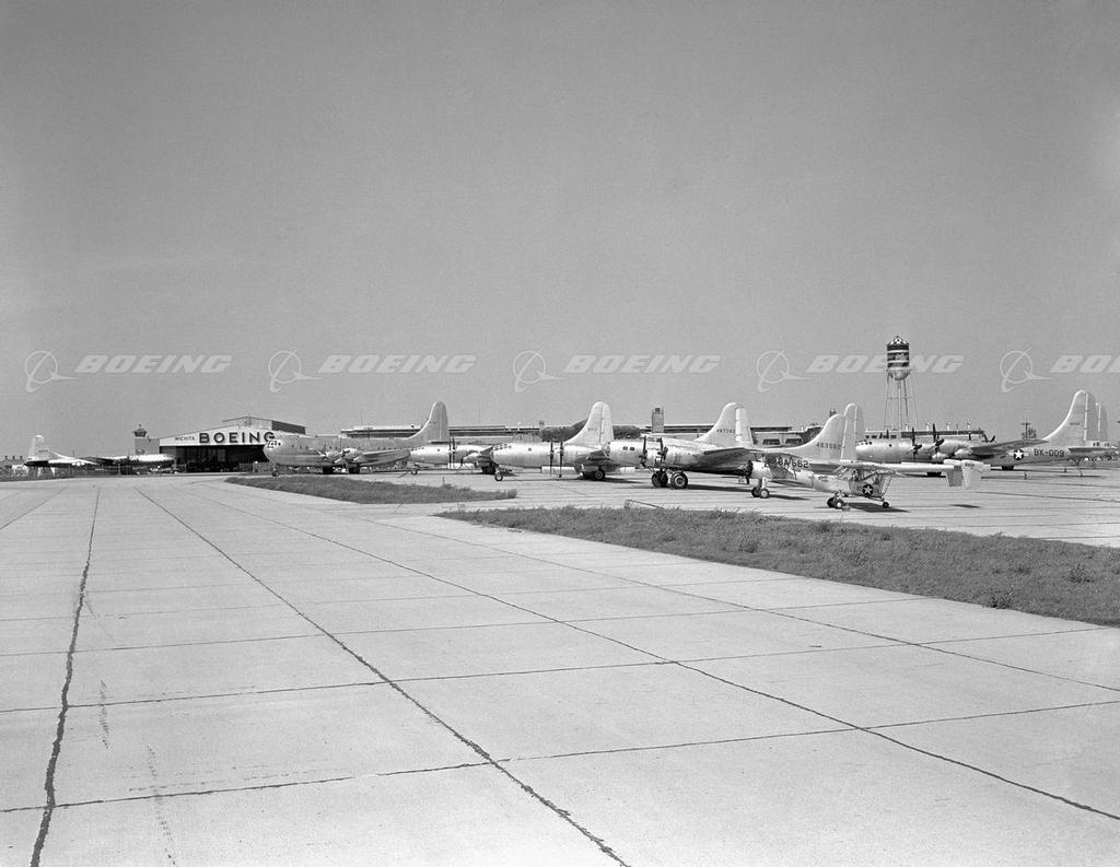 B-52A, KC-97, B-47, B-29, B-17 and XB-52 at a Boeing Field Open House Event, circa 1955