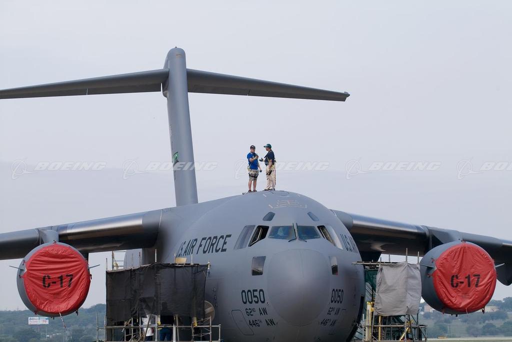 Boeing Workers Inspect a C-17 Globemaster III Wing
