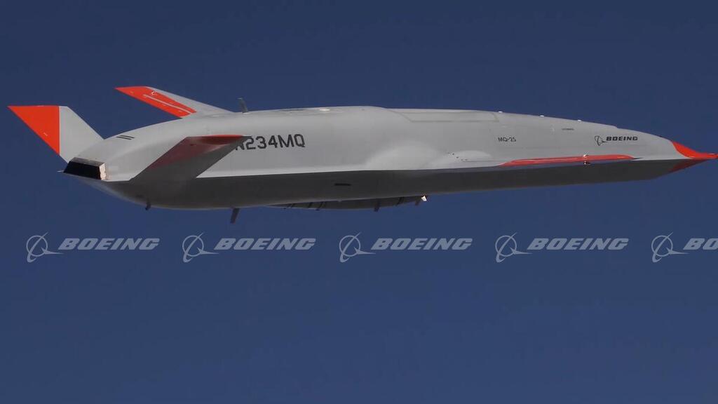 Boeing-owned MQ-25 test asset, aircraft T1, in flight