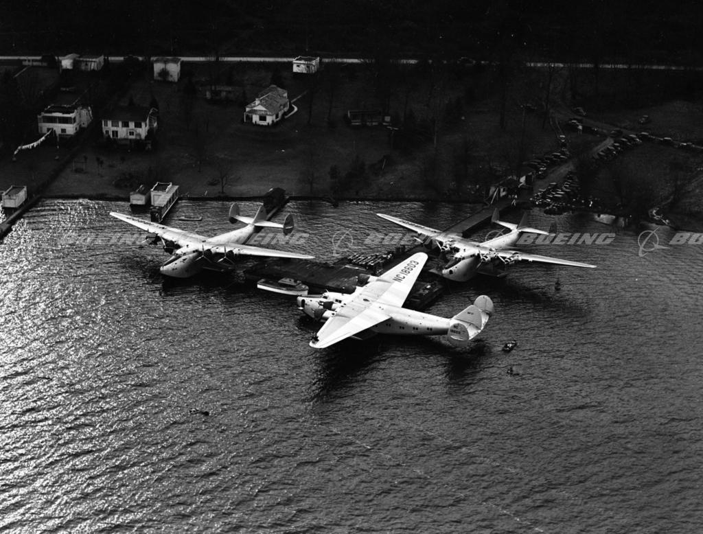 The Boeing Model 314 flying boat, known as the Boeing "Clipper," was the epitome of air-travel comfort in 1938. The largest passenger transport of its time, its amenities included a lounge, a dining salon, and a bridal suite. Its 74 seats converted into 40 bunks.