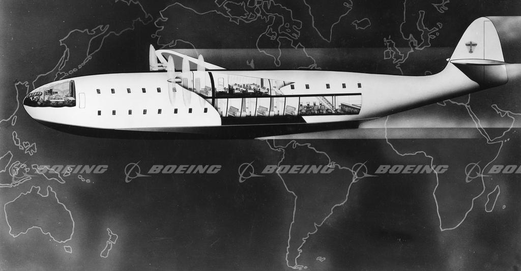 The Boeing Model 326 pressurized double-deck flying boat was designed in response to a 1937 Pan American Airways proposal for a flying ocean liner capable of a non-stop crossing over the Atlantic Ocean. This idea never reached production.