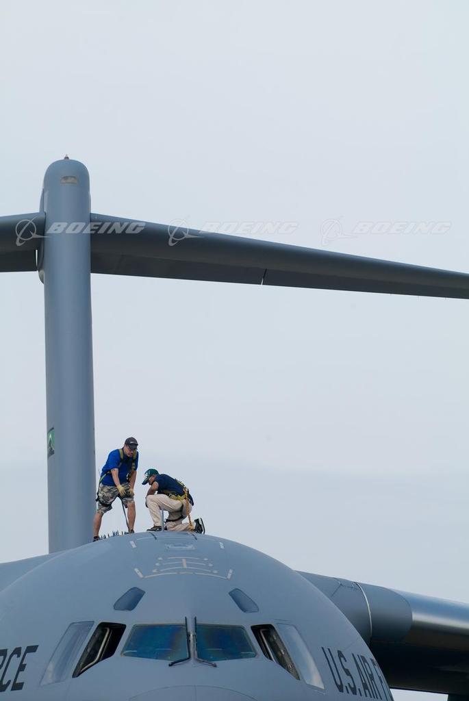 Boeing Workers on the Wing of a C-17 Globemaster III