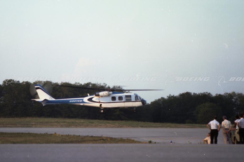 The Boeing Vertol Model 179/YUH-61, was a twin turbine-engine, medium-lift, military assault/utility helicopter. The YUH-61 was the runner-up in the United States Army Utility Tactical Transport Aircraft System (UTTAS) competition to replace the Bell UH-1 Iroquois helicopter. Three aircraft were built for the Army competition held in 1976. A 'navalized' version, the Model 237, was the runner-up in the Navy's LAMPS II competition for a ship-based multi-purpose helicopter. A fourth prototype, the Model 179 civil demonstrator that could carry between 14 and 20 passengers, was completed but the program was later cancelled. The Boeing Vertol cockpit design was unique in that the crew were seated in a laterally staggered tandem configuration. (Negative is in poor condition.