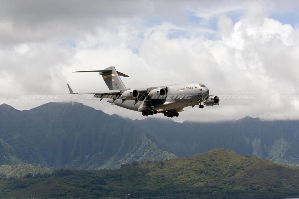 Hawaiian C-17 Globemaster III Comes in Low