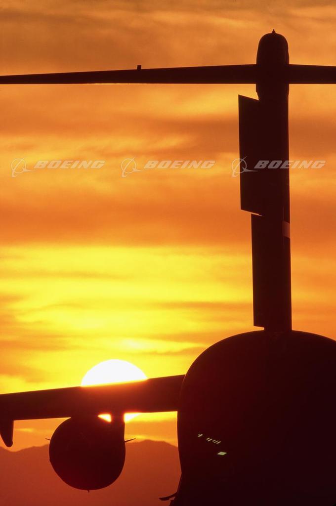 Silhouette of C-17 Globemaster III Tail from Under Wing