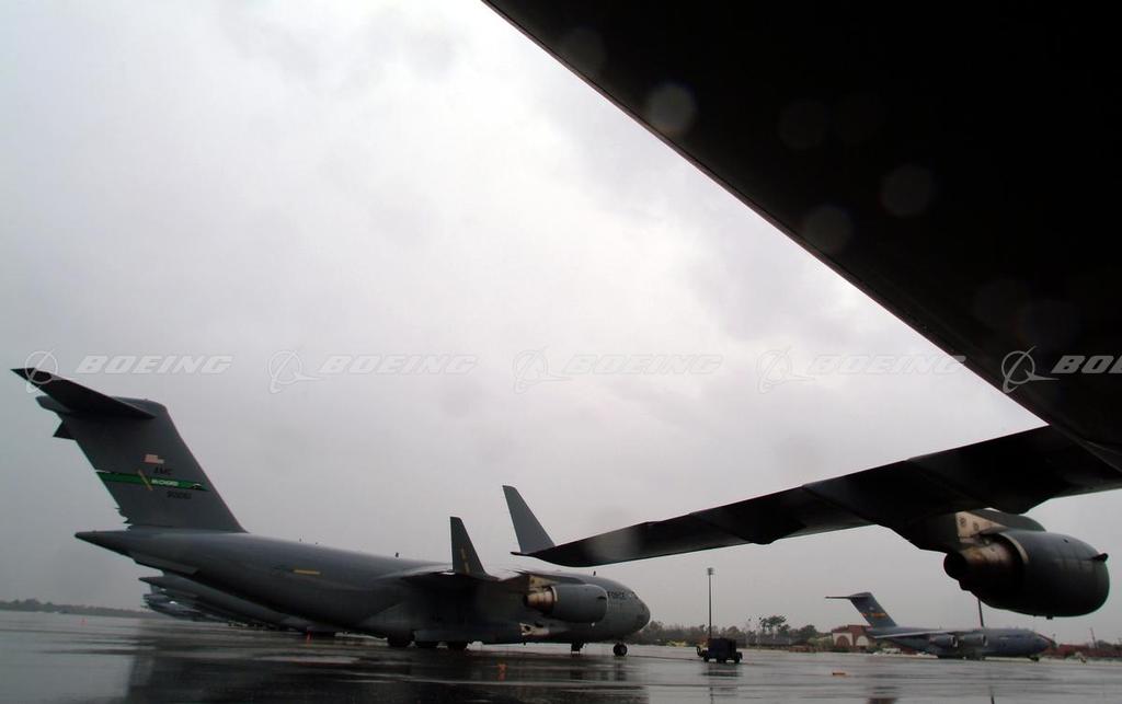 C-17 Globemaster III Landing Over Fleet of C-17s