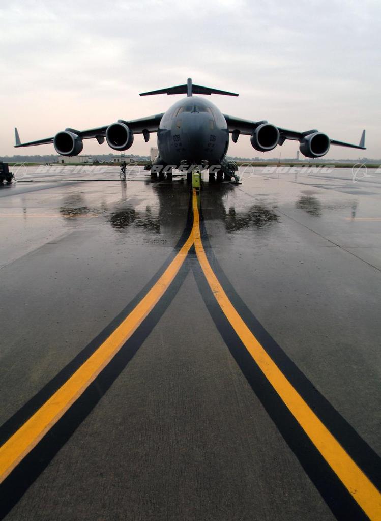 The C-17 Globemaster III is a high-wing, four-engine, T-tailed aircraft with a rear loading ramp. With its 160,000-pound payload, the C-17 can take off from a 7,600-foot airfield, fly 2,400 nautical miles and land on a small, austere airfield in 3,000 feet or less. On the ground, a fully loaded aircraft, using engine reversers, can back up a 2 percent slope. During normal testing, C-17s set 22 world records, including payload to altitude time-to-climb and the short takeoff and landing mark, in which the C-17 took off in less than 1,400 feet, carried a payload of 44,000 pounds to altitude and landed in less than 1,400 feet. Deployed in June 1993, it won the Collier Trophy in 1994, symbolizing the top aeronautical achievement of 1994.