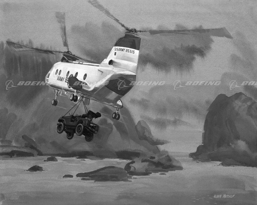 The CH-46 Sea Knight tandem rotor helicopter is used by the U.S. Navy and Marine Corps and other nations including Canada, Sweden, Japan, and Saudi Arabia. It has been serving customers around the world for more than 40 years. It has a straighter, more-compact fuselage than the Army Chinook, and can take off from water or land. Its U.S. Navy missions include vertical replenishment, vertical on-board delivery, search and rescue, medical evacuation, combat support, special warfare and general utility. The Marine Corps mission for the CH-46E includes combat assault, SAR, medevac, and movement of troops, ammunition, supplies and equipment on the battlefield. A commercial version of the Sea Knight, the Vertol 107, flew for New York Airways during the early 1960s.
