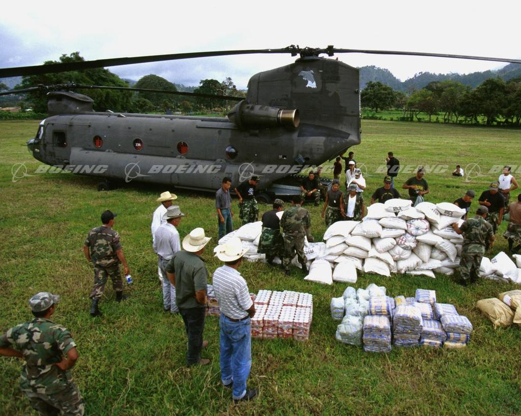 After Hurricane Mitch destroyed roads, bridges and other infrastructure in Honduras and other Central American nations in late 1998, U.S. Army CH-47D Chinooks provided a lifeline for thousands of people isolated in rural areas. The Chinooks carried tons of food, medical supplies and personnel and other materials throughout the region, making the difference between life and death for thousands of hurricane victims.