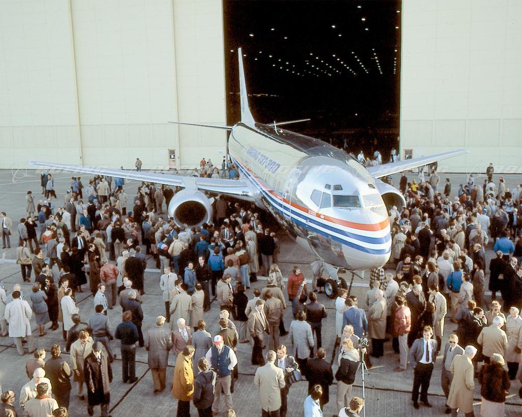 Crowd Surrounds the New 737-300 at its Rollout Ceremony in 1984