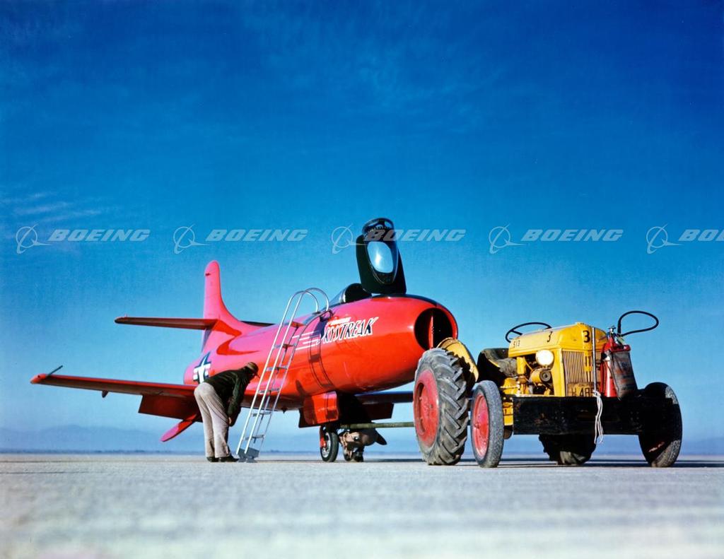 D-558-1 Skystreak #1 with Tractor at Muroc Air Base