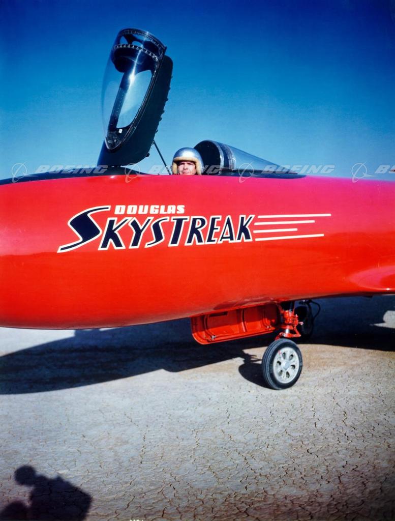 The pilots who volunteered to fly the D-558-1 Skystreak and the D-558-2 Skyrocket undertook tremendous risks involved in becoming pioneers of flight. Their endeavors made an undeniable contribution to the safety of jet travel. One of those courageous pilots was Douglas company test pilot Gene May. Between 1947 and 1949, May flew more transonic flights than any other pilot. He flew not only the D-558-1 but also the Bell X-1, in which he became the sixth person to break the sound barrier. He retired from flight testing in 1949 after proving the Douglas D558-2 Skyrocket.