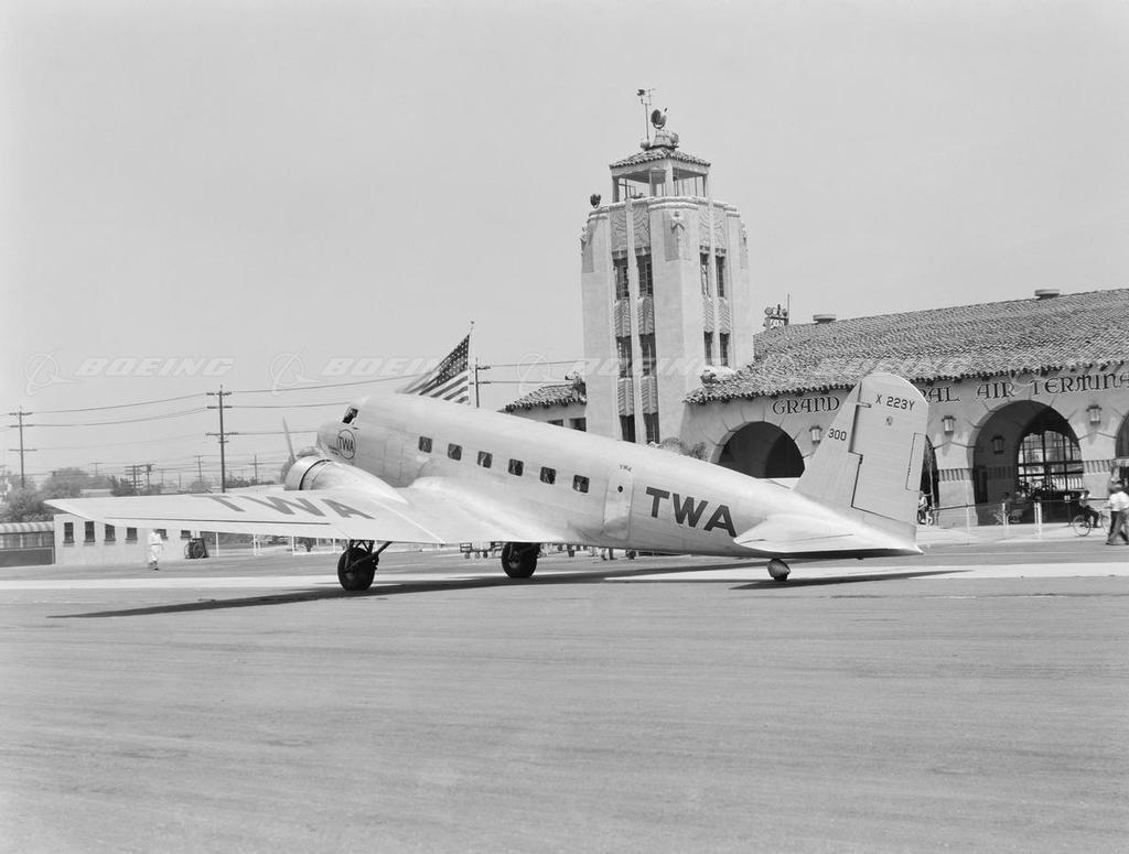 The Los Angeles Air Terminal provided the backdrop for the DC-1 on a visit in 1933, the year of the first flight of the historic airliner. Although only one DC-1 was built, TWA and other airlines ordered more than 130 DC-2s, a slightly modified version of the DC-1. The world-famous DC-3, which flew for the the first time in 1935, was simply the logical evolutionary development of the DC-1 and DC-2. Douglas Aircraft built more than 10,000 DC-3s, most of them as military transports designated the C-47.