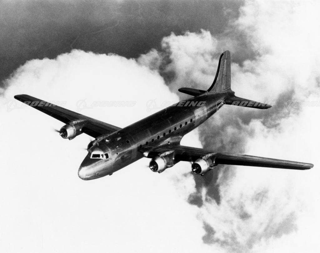 Douglas decided to produce a four-engine transport about twice the size of the DC-3 and, in 1938, developed the single DC-4E to carry 42 passengers by day or 30 by night. It had complete sleeping accommodations, including a private bridal room.