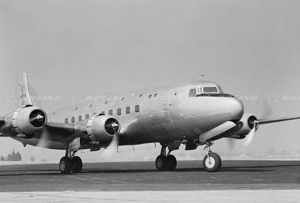 Douglas DC-6 (1946-1958): Nearly identical to the DC-4 in appearance, the DC-6 was first conceived as a long-range military transport. The plane made its maiden flight on February 15, 1946. The key difference between the DC-4 and DC-6 was the DC-6’s larger engines, which were twice as powerful as the engines on the DC-4. The DC-6 was the first Douglas airliner with a pressurized cabin, which enabled it to fly higher and faster, thus taking its passengers “over the weather.” The DC-6 was the most economical commercial aircraft of the propeller era. Its operating costs were among the lowest until jetliners came on the scene. Military versions were produced under the designations C-118 (Air Force) and R6D (Navy). President Harry Truman chose a DC-6 for official use, and christened it the “Independence,” for his hometown in Missouri. During its 12-year production run, Douglas delivered 537 DC-6s, plus 167 military versions.