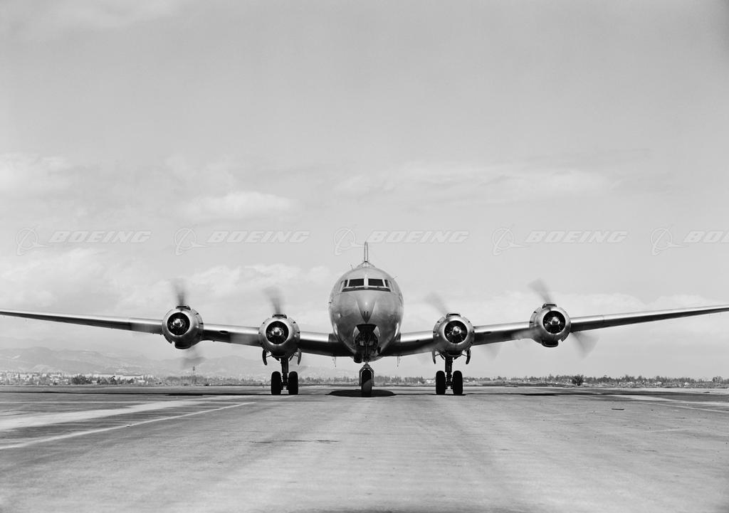 Douglas DC-6 (1946-1958): Nearly identical to the DC-4 in appearance, the DC-6 was first conceived as a long-range military transport. The plane made its maiden flight on February 15, 1946. The key difference between the DC-4 and DC-6 was the DC-6’s larger engines, which were twice as powerful as the engines on the DC-4. The DC-6 was the first Douglas airliner with a pressurized cabin, which enabled it to fly higher and faster, thus taking its passengers “over the weather.” The DC-6 was the most economical commercial aircraft of the propeller era. Its operating costs were among the lowest until jetliners came on the scene. Military versions were produced under the designations C-118 (Air Force) and R6D (Navy). President Harry Truman chose a DC-6 for official use, and christened it the “Independence,” for his hometown in Missouri. During its 12-year production run, Douglas delivered 537 DC-6s, plus 167 military versions.