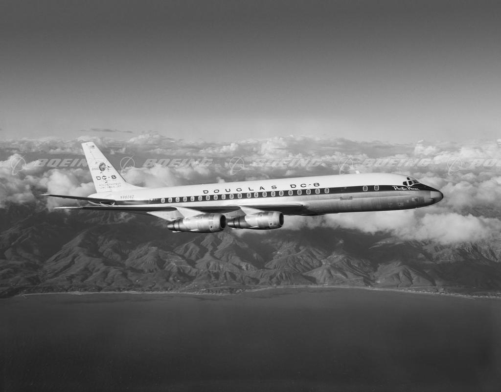 DC-8 Above the Ocean on its First Flight